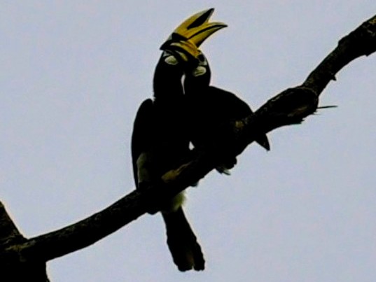 Kaum dort angekommen, startet auch schon die erste Bootsfahrt um 16 Uhr. Der Anfang ist vielversprechend, wir sehen Elefanten gleich bei der Lodge und einen Orang-Utan vom Boot aus. Dann wird das Wetter schlechter, es beginnt zu Regnen. Rechts und links vom Fluss schiessen Blitze nieder bis schliesslich ein Blitz am Ufer, weniger als 100 Meter von uns entfernt, in eine Palme einschlägt. Die Palmenkrone brennt, der Guide fährt mit dem Boot noch näher ans Ufer in Richtung dieser brennenden Palme, aber eigentlich wollen alle nur noch in Sicherheit. Mit Vollgas rasen wir zurück zur Lodge, links und rechts blitzt und donnert es. So nah und ausgesetzt haben wir noch nie ein Gewitter erlebt. Bei der Lodge angekommen, bin ich einfach nur froh, dass wir wieder heil da sind, obschon die Bootsfahrt nur eine halbe Stunde anstatt der vorgesehenen 2 Stunden gedauert hat. Auf den weiteren Bootsfahrten, jeweils frühmorgens um 6 Uhr und spätnachmittags um 16 Uhr, sehen wir ein Krokodil, Hornvögel, Makaki-Affen, Nasenaffen, einen grossen Varan und einen Kingfisher (Eisvogel). Wir haben grosses Glück, soviel zu sehen, wie der Guide immer wieder betont.