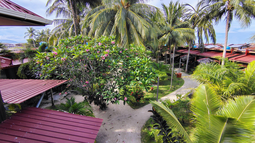 Am übernächsten Morgen in der Früh fahren wir mit dem Scuba Junkie Boot ca. 1 Stunde nach Mabul in das gebuchte Resort. Das Resort hier ist viel grösser als jenes in Komodo. Alles ist bis ins Detail organisiert, das Zimmer ist gross, komfortabel und mit einer schönen Terrasse. Das Essen ist typisch malaysisch und sehr gut. Kurz gesagt, Scuba Junkie Sipadan ist absolut empfehlenswert, Preis- / Leistung stimmt hier (abgesehen von den Lizenzgebühren, aber diese werden ja nicht vom Resort festgesetzt). Es ist absolut nichts für Langschläfer, die Boote fahren bereits um 6 Uhr los nach Sipadan. Nur wenige Schritte vom Steg zum Resort entfernt stehen einfachste Blechhütten, auf Stelzen über dem Wasser errichtet. Der Kontrast zum Komfort des Resorts könnte kaum größer sein. Täglich geht man daran vorbei – und stellt sich die Frage, wie die Menschen hier unter diesen Bedingungen leben können.