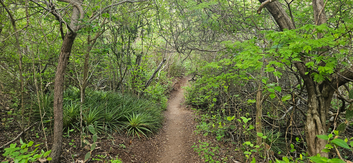 Im Christoffel Nationalpark können verschiedene Touren unternommen werden, entweder zu Fuss oder mit dem Auto. Wir entscheiden uns für die Wanderung auf den Mount Christoffel auf 372 Metern über Meer. Gemäss den Instruktionen von der Parkaufsicht muss man diese Wanderung vor 10 Uhr beginnen, da es sonst zu heiss wird, sowie eine Erklärung unterschreiben, dass man «genügend fit» ist und Risiken selbst verantwortet. Wir starten unsere Wanderung um ca. 7 Uhr morgens. Der Weg ist ziemlich steil und man muss immer mal wieder die Hände zu Hilfe nehmen, um die grossen Felsblöcke hinaufzusteigen. Nach ca. anderthalb Stunden mit einigen kleinen Pausen erreichen wir den Gipfel, geniessen die schöne Rundum-Aussicht und machen uns dann wieder auf den Rückweg.