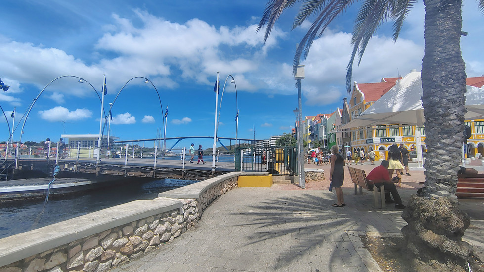 Willemstad ist die Haupstadt von Curaçao und es gibt viele farbige Häuser entlang des Kanals zum Meer, welche etwas an Amsterdam erinnern. Seit 1997 gehört die Innenstadt zum UNESCO Weltkulturerbe. Es ist sehr touristisch hier, mit vielen Hotels und Geschäften. Grosse Kreuzfahrtschiffe legen im Hafen regelmässig an. Eine Sehenswürdigkeit ist sicher auch die Königin-Emma-Brücke, eine schwimmende Brücke durch den Kanal zum Meer, welche für die Durchfahrt von Schiffen ans Ufer gefahren werden kann.
