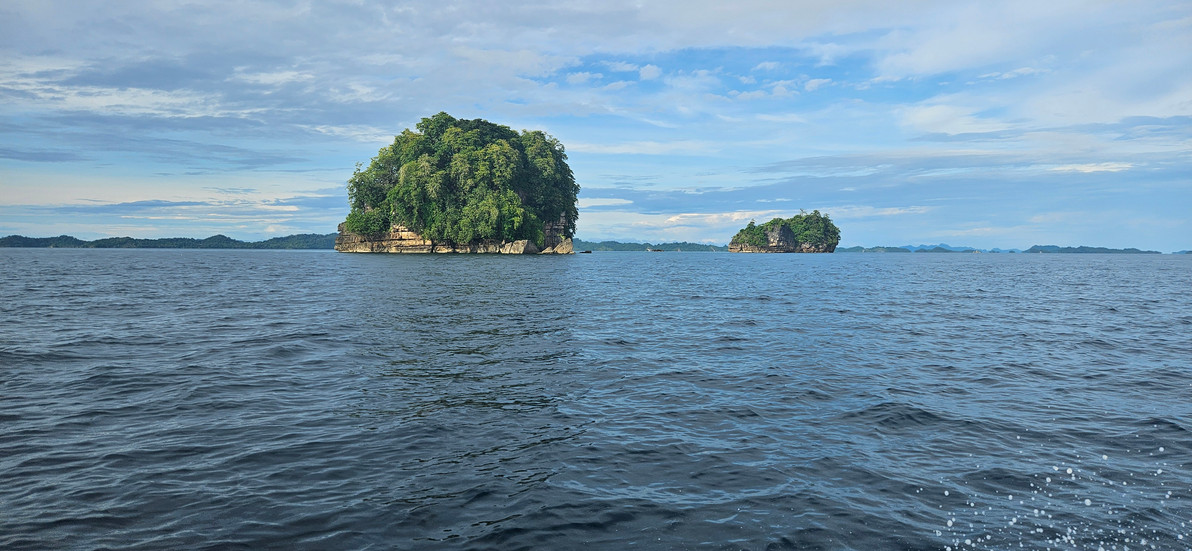 Lange habe wir uns überlegt, ob wir die Reise nach Misool machen sollen. Wir haben bezüglich Tauchen gelesen, dass dies das allerbeste Tauchgebiet in Raja Ampat ist und auch in Gesprächen mit anderen Tauchern ist uns dies bestätigt worden. Die Fähre geht nur zweimal wöchentlich, auf www.stayrajaampat.com gibt es ein Bild mit einem Fahrplan und einer Kontaktperson. Ca. vor einer Woche habe ich mich bei dieser Kontaktperson per Whatsapp gemeldet um eine Kabine zu reservieren. Ich habe dann auch postwendend eine Antwort erhalten, dass eine Kabine für uns reserviert ist. Bezahlen könne man dann auf der Fähre. In Sorong fahren wir am morgen nochmals zum Hafen an den Ticketcounter um die Reservation zu bestätigen und die Tickets zu kaufen. Das hätten wir uns jedoch sparen können, denn wir erhalten wieder dieselbe Auskunft wie schon per Whatsapp: Bezahlen auf der Fähre. Immerhin zwei übereinstimmende Antworten. Die Fähre geht um 22.00 Uhr los und kommt am nächsten Morgen in Misool an. Wir sind ca. um 20.30 am Pier und es gibt etwa vier Fähren, welche nebeneinander geparkt sind. Die Schiffe werden gerade mit Fracht beladen und ein Angestellter fragt: To Misool? Ja, sagen wir und schon wird unser Gepäck zu unserer Kabine auf das oberste Deck geschleppt. Ein Deck unterhalb unserem sind nochmals zwei westliche Touristen, ansonsten sind alles Einheimische auf dem Boot. Im untersten Deck sind die unreservierten Schlafplätze, Kajütenbetten Reihe an Reihe. Wir setzen uns auf die Bänke am Bug und fragen nochmals, ob dieses Schiff wirklich nach Misool fährt, denn es gibt auch Fähren die mehrere Tage an weit entfernte Orte unterwegs sind. In unserer Kabine hat es zwei schmale Kajütenbetten und eine Klimaanlage, welche mit der gegenüberliegenden Kabine geteilt wird. Dafür wurde einfach ein Loch um die Klimaanlage gesägt, sodass man zum Nachbar hindurchschauen könnte. Die Fahrt geht los und wir sind froh, dass alles geklappt hat. Hoffentlich geht dann auch mit der Rückfahrt in 8 Tagen alles rund. In der Facebook Gruppe wird derzeit diskutiert, ob dieser Kurs überhaupt noch durchgeführt wird und es ist von kurzfristigen Fahrtstornierungen die Rede. Hoffen wir mal das Beste. Am Morgen kommen wir am Pier in Misool an und die Crew von unserem Homestay erwartet uns bereits mit dem Speedboot, um uns auf die kleine private Insel des Homestays zu bringen. Auf dem Pier werden die mit der Fähre angelieferten Nahrungsmittel wie auf einem Markt verkauft und entsprechend ist hier ein geschäftiges Treiben. Die Inseln von Misool sind sehr dünn besiedelt. Eine Stadt gibt es hier nicht und die Dörfer sind meist eine Ansiedlung von ein paar Häusern, oft über dem Wasser gebaut. Anders als im nördlichen Teil von Raja Ampat, wo die Mehrheit Christen sind, gibt es hier ihm südlichen Teil vorwiegend Moslems.